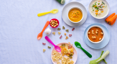 • Супа „Витаминка“ с елда моркови, елда, лук, червено цвекло, аспержи, доматено пюре, зехтин, йодирана морска сол и копър.
